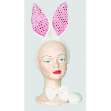 El Set de Conejita de 3 Piezas, es un conjunto compuesto por una Diadema con orejas de Conejita, una pajarita y cola, compuesto por tejido de pelo y lentejuelas.