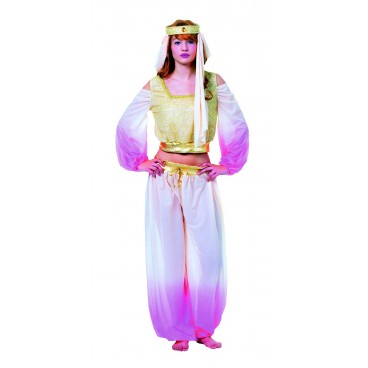 Éste disfraz de Princesa Griega se compone de Camiseta de tirantes dorada con Mangas largas en rosa degradado y los hombros al aire.